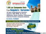 Are you looking for manufacturing companies in Bangalore? 99Datacd offers updated and verified manufacturing companies in Bangalore at affordable prices. Purchase 1.96 Lac BANGALORE / KARNATAKA Companies ( All types Of SME, MSME, FMCG, manufacturers, corporates, exporters, importers, distributors, and dealers). all trades data. Our expert team provides verified list of manufacturing companies in Bangalore that includes essential details such as company name, city, pin code, state, mobile number, email ID, website, and business details.