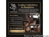 1Exotica Leathers provides leather upholstery in Bangalore that is stylish and long-lasting. Our leather finishes are available on everything from sofas to chairs to car seats to custom furniture. We ensure durability, comfort, and beautiful designs tailored to your needs. Our products are made from top-quality materials to deliver superior performance and a luxurious look. Exotica Leathers offers a wide range of modern and classic upholstery solutions for your home or office. Give us a call today if you want your car seat covers to be transformed by the best leather upholstery services in Bangalore.