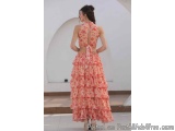 Lightweight chiffon that breathes in coastal heat. A halter neck silhouette that flatters the shoulders and neckline. A ruffle maxi skirt that flows with every step on the sand. Beige with a floral print — the most versatile beach palette of 2026. Available in sizes S to XXL, with COD and 24-hour shipping across India.