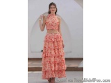 The Bria Beige Co-ord Set by Luxe & Hardy is built exactly for this. A pleated halter neck crop top with a tie-up back, scattered floral prints on airy chiffon, and a layered ruffle skirt that moves with the breeze — it is effortless beach-to-dinner dressing in a single outfit.