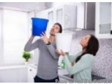 Con cubetas para las goteras?