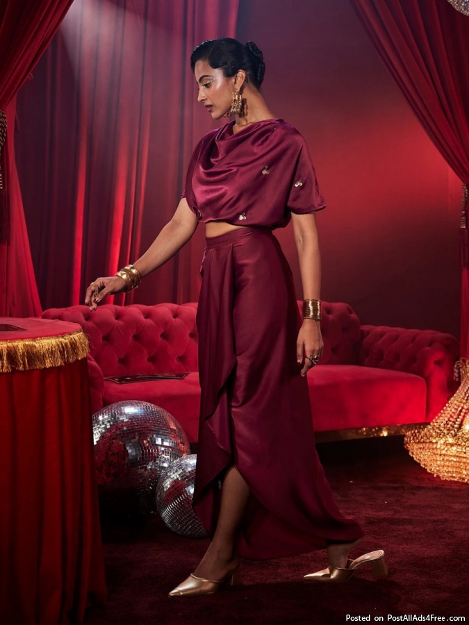 Amoura Satin Draped Skirt – Party Wear Long Dress & Event