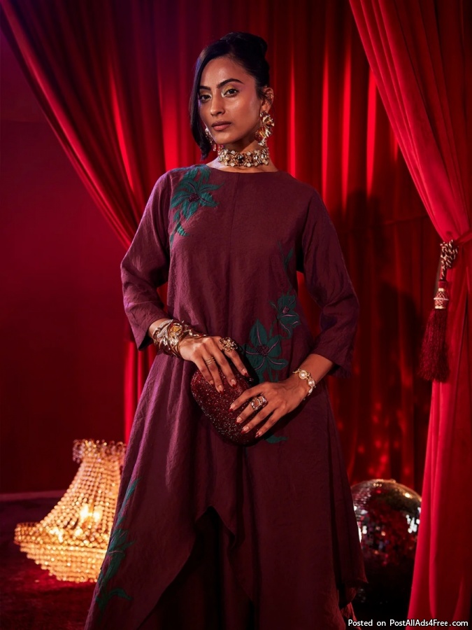 Lilia Wine Embroidered Tunic – Trending Party Wear Tops For