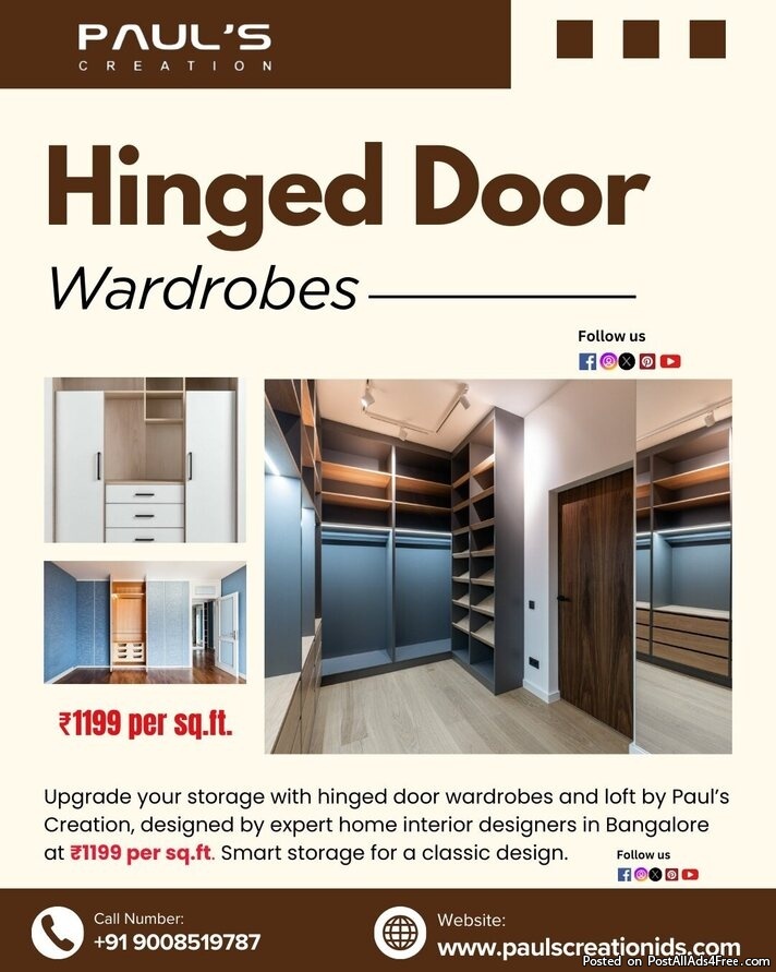 Home Interior Designers In Bangalore | Hinged Door Wardrobes &