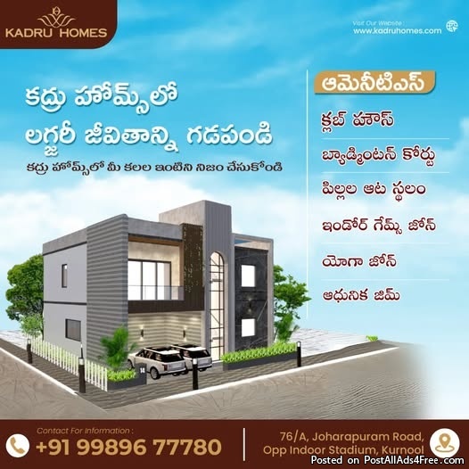 Kuda Approval Villas With Modren Amenities Kurnool | Kadru Homes