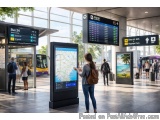 Digital wayfinding signage for airports helps visitors navigate through terminals, gates, and other airport facilities at large airports while interactive digital kiosks for transportation help passengers find routes and explore transportation maps on their own.