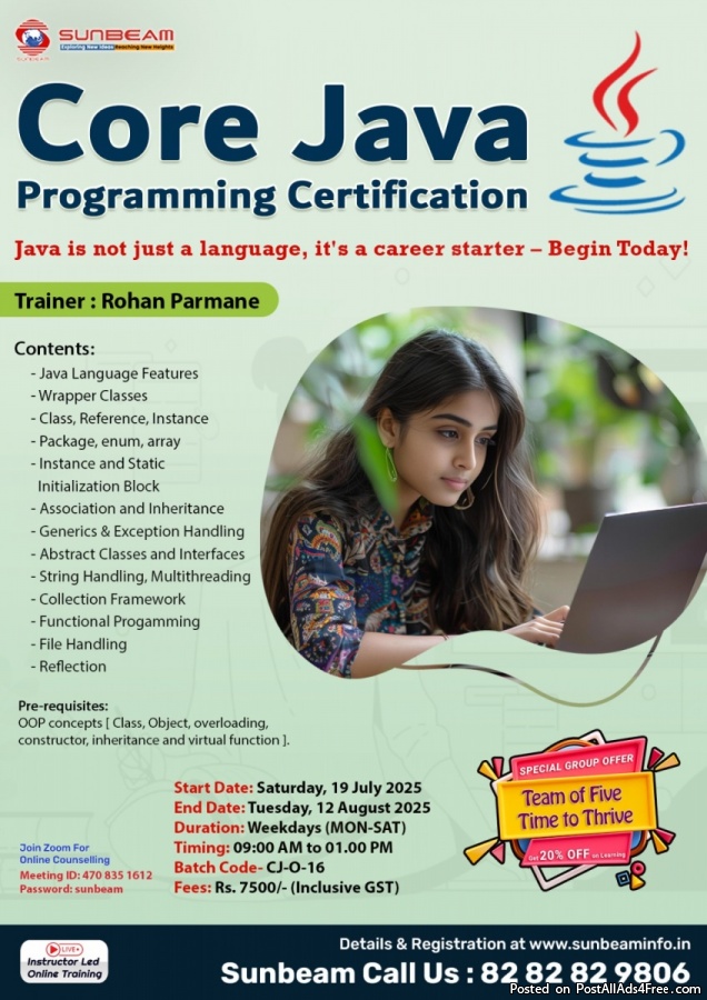 Learn Core Java From Scratch At Sunbeam, Pune!
