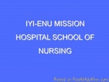 54School of Nursing Iyi-Enu Mission Hospital, Ogidi 2025/26 Session Admission Forms are on sales. Call the school Admin on 07038184865 for more details on how to register online. Welcome to School of Nursing Iyi-Enu Mission Hospital, Ogidi. This school trains students who will become qualified nurses according to Nursing and Midwifery Council of Nigeria standard. The school has qualified/experience Tutors with M.Sc., B.Sc. and HND in Nursing. Our products (ex-students) are found all over the world and they project a good image of the school/hospital wherever they find themselves. School of Nursing Iyi-Enu is 85 years old.