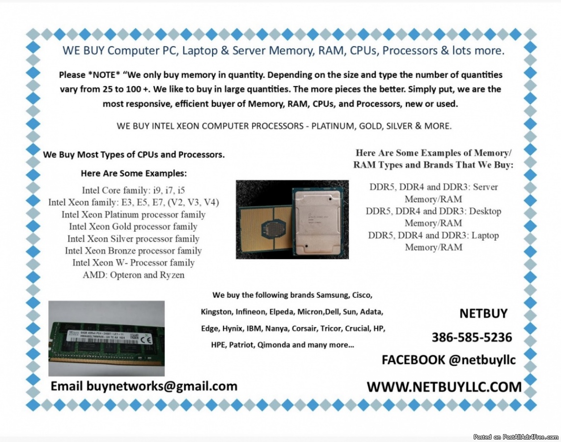 We Buy New And Used Cisco Switches, Routers, Memory, Servers,